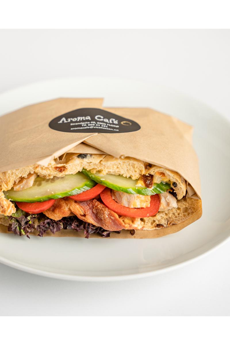 Ferdig påsmurt blings med chilimajones,kylling salatkjøtt,salat,grønnsaker.